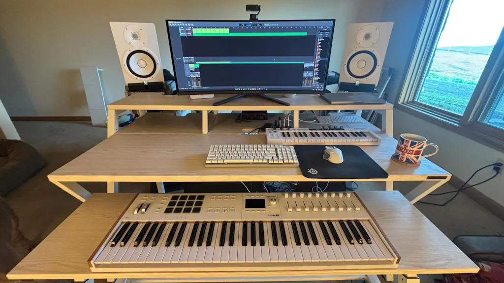 Purchased this desk based on a YouTube video. I was looking for a simple desk with built-in rack and shelf for speakers and monitors. The Headquarter does that fine, but there are some design issues that I should have look at closer before buying. The main problem is that the support bar behind the desk is in the way of the rear of the rack gear making it difficult, clunky to connect cables. It can block access to the rear of some gear, especially those that are deep, like my Apollo x8 interface. I can only mount that in the lowest space on the rack in order to cleanly get to the rear connections. Same with my Distressor. So, there’s no clean, unfettered access rear ports on your gear.